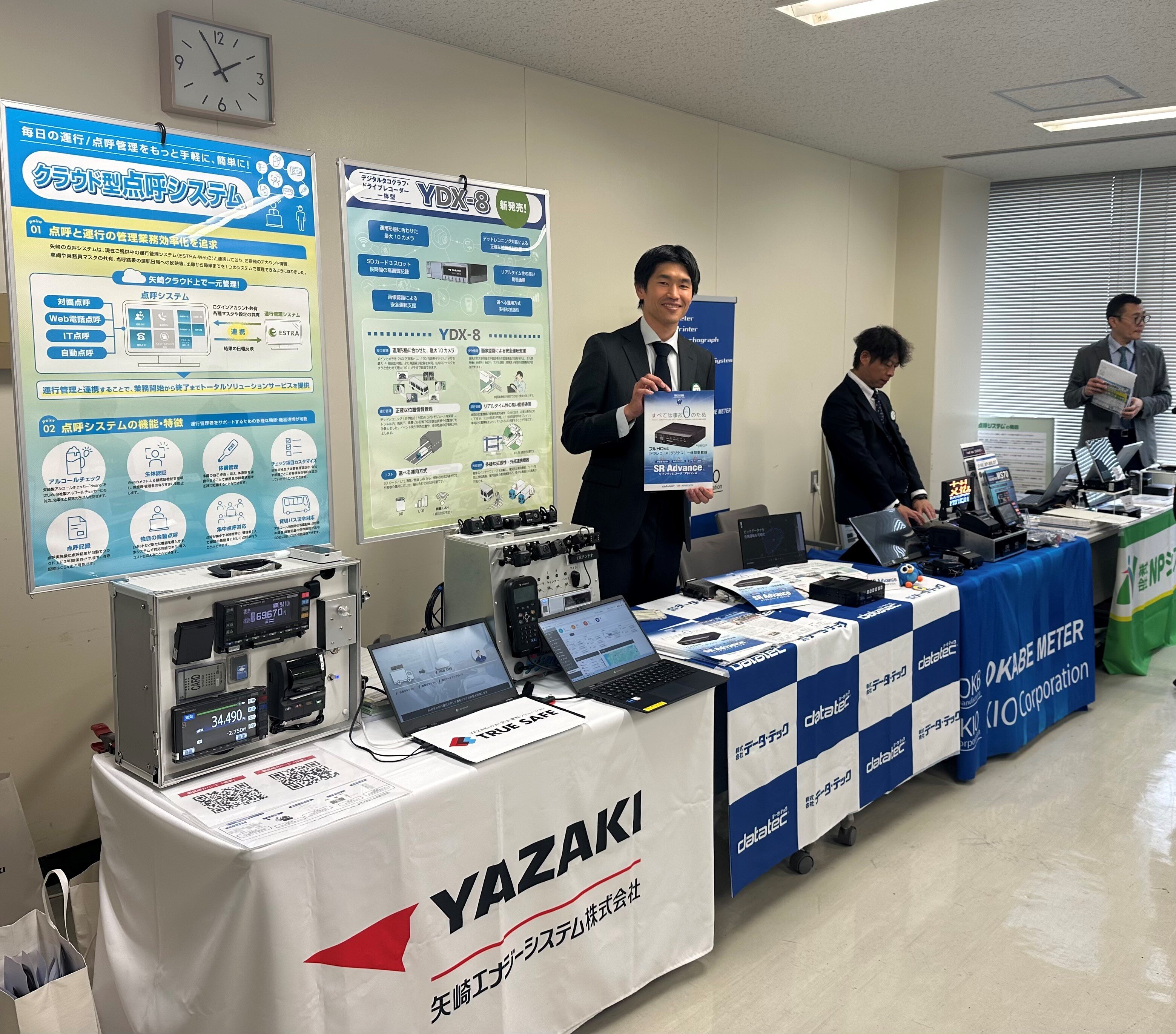 弊団体より「デジタルタコグラフを用いた自動車事故防止について」と題して株式会社NPシステム開発 北海道支店長 坂井が登壇いたしました。運行記録計の歴史やデジタルタコグラフの基本的な使い方、管理のポイントなどを伝えさせていただきました。また、展示ルームでは会員4社がデジタルタコグラフを初め最新型のタクシーメーターの展示をし、車載機器のほか点呼機能や労務管理機能などについても事業者の方々へご説明をさせていただきました。